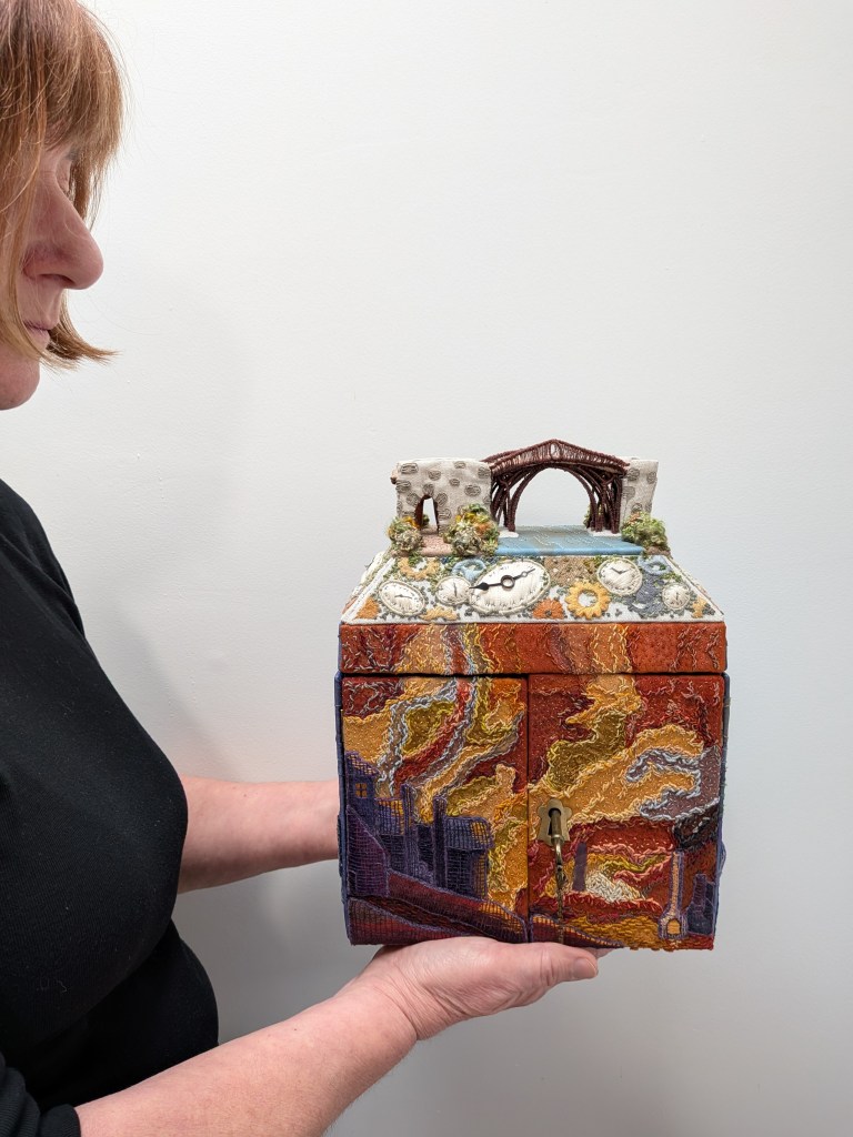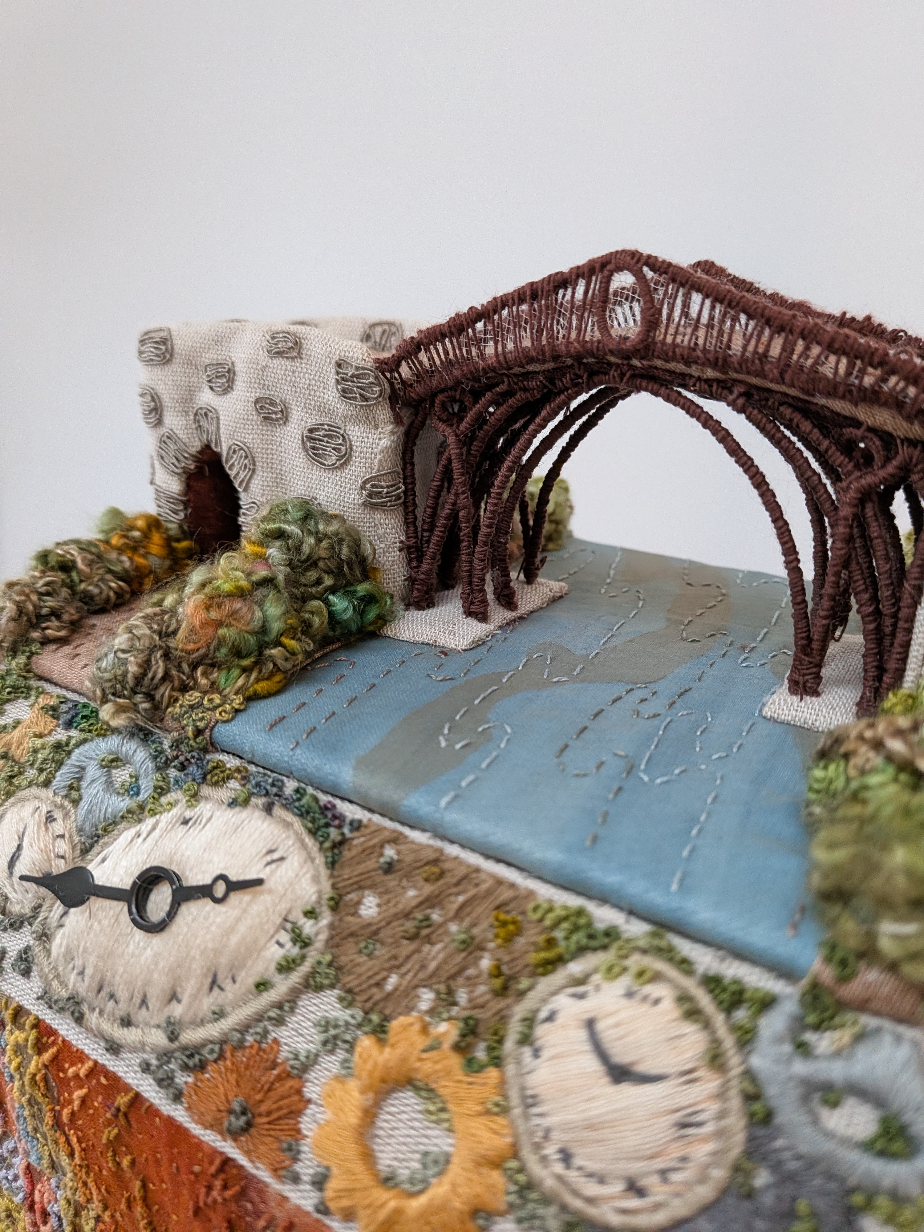 Depicting the birthplace of the Industrial Revolution and it’s legacy, this three-dimensional embroidery challenges the historical devaluation of textile art. Encouraging reflection on the value of handmade work, human touch and meaningful connection in an increasingly mechanised and digital global world.